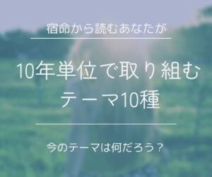 こんにちは。宿命鑑定セラピストの玲です。 本日は算命学の占技のひとつを参考にしながらご自身の今のテーマを知る試みです。 ご興味がある方は今現在の年齢にどの大運がまわっているのかを調べてみてくださいね(^^)/ 大運を調べ […]