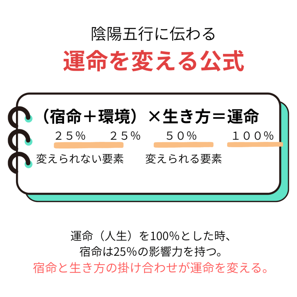 人の運命は変えられないものと変えられるものの掛け合わせで成り立っていて、後天的にいかようにも変化させていくことが出来るという解釈が出来ます。